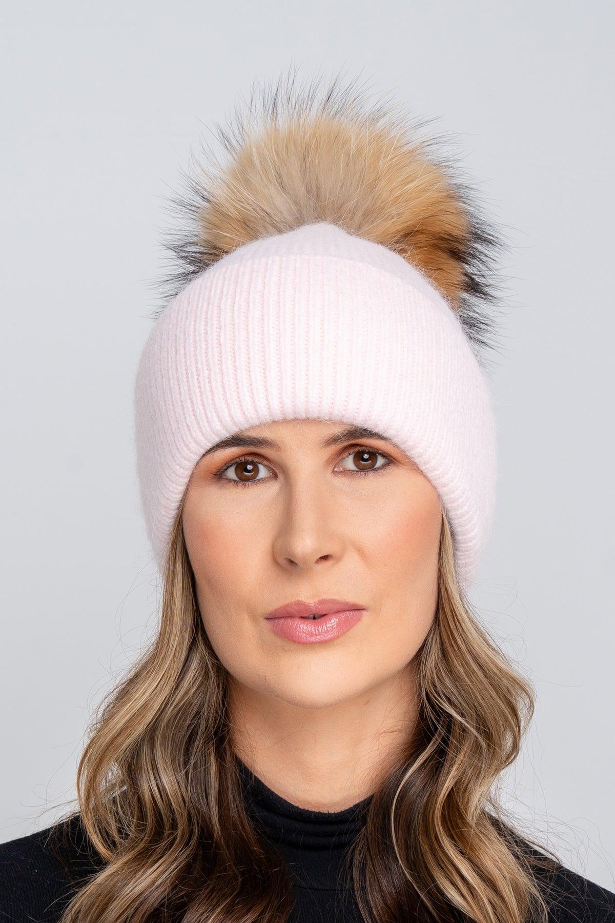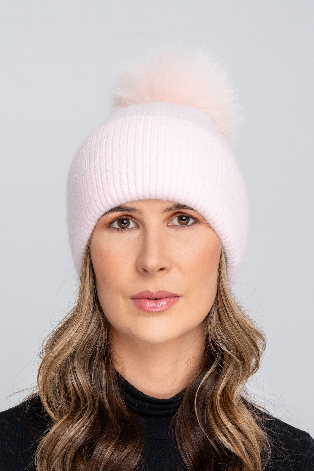 The Kensington Cameo Pink Angora/Cashmere Mix Fur Bobble Hat
