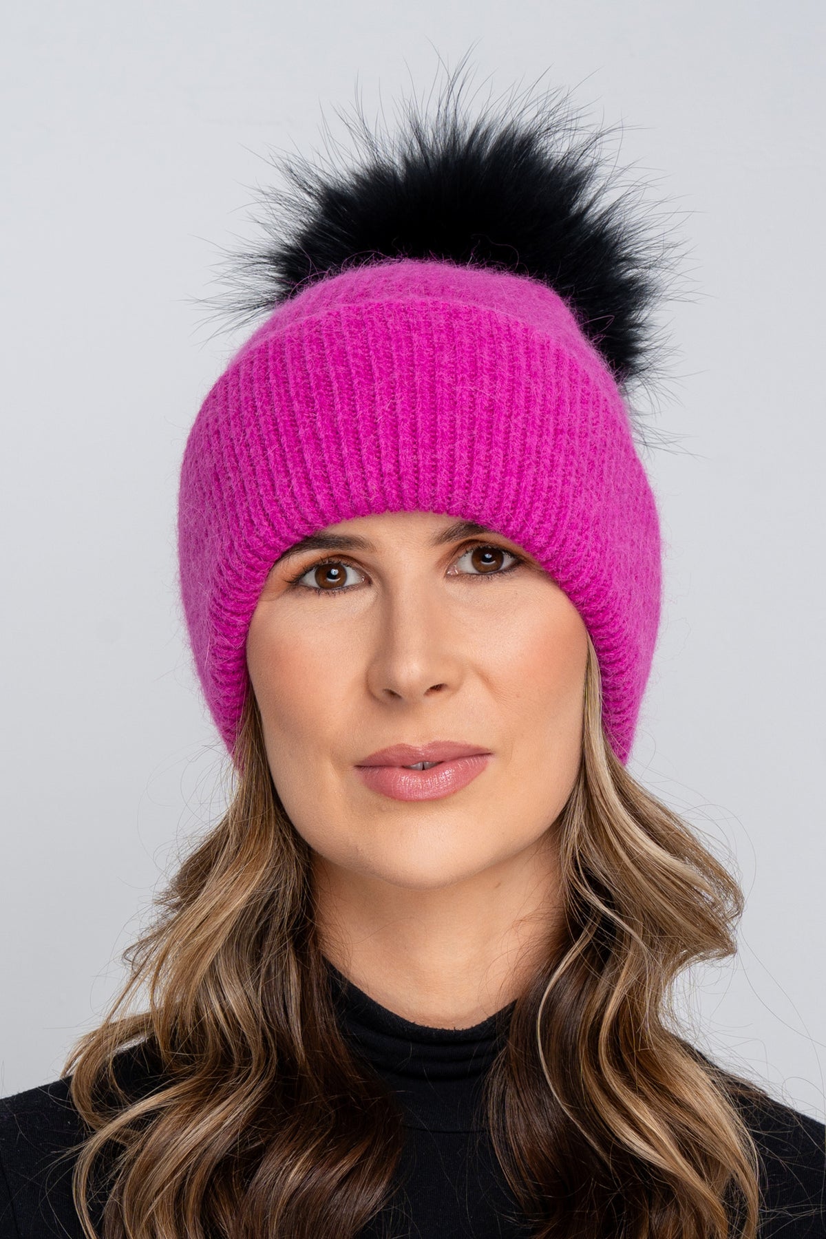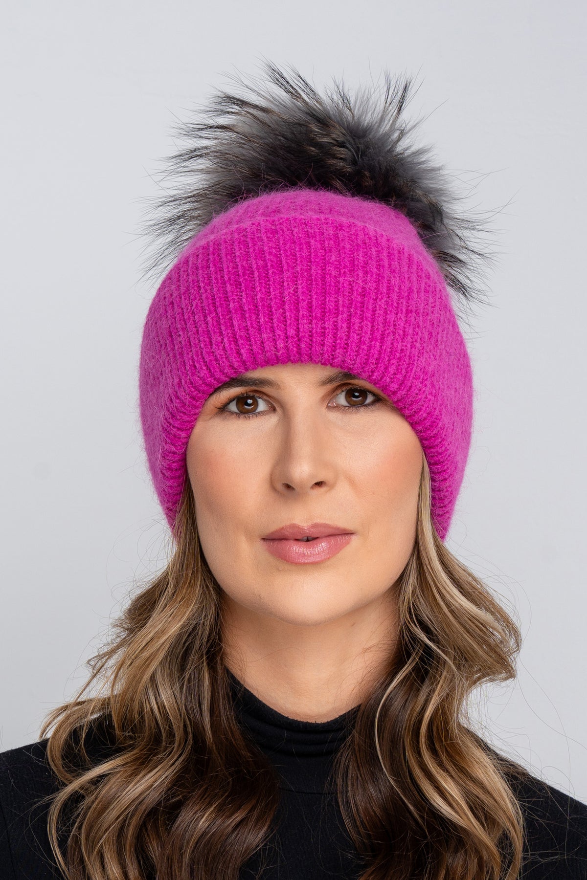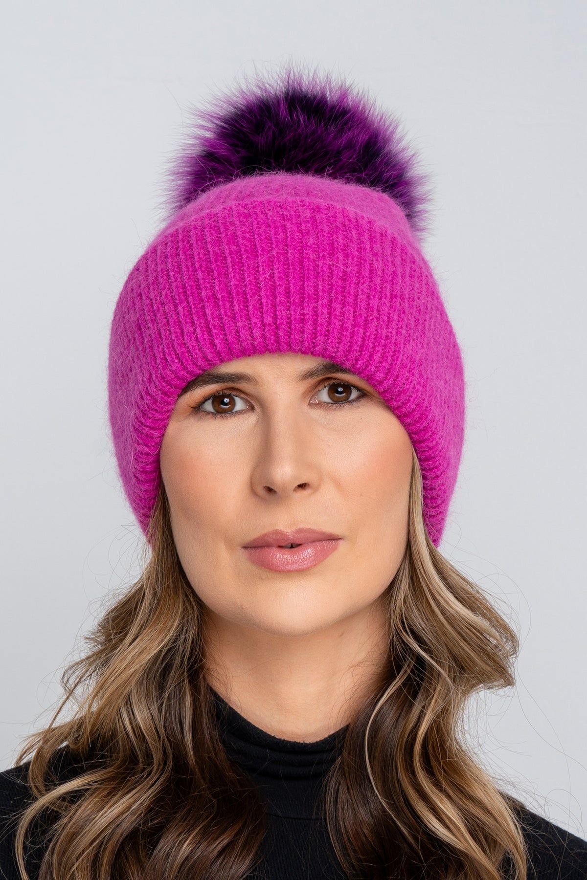 The Kensington Fuchsia Angora/Cashmere Mix Fur Bobble Hat