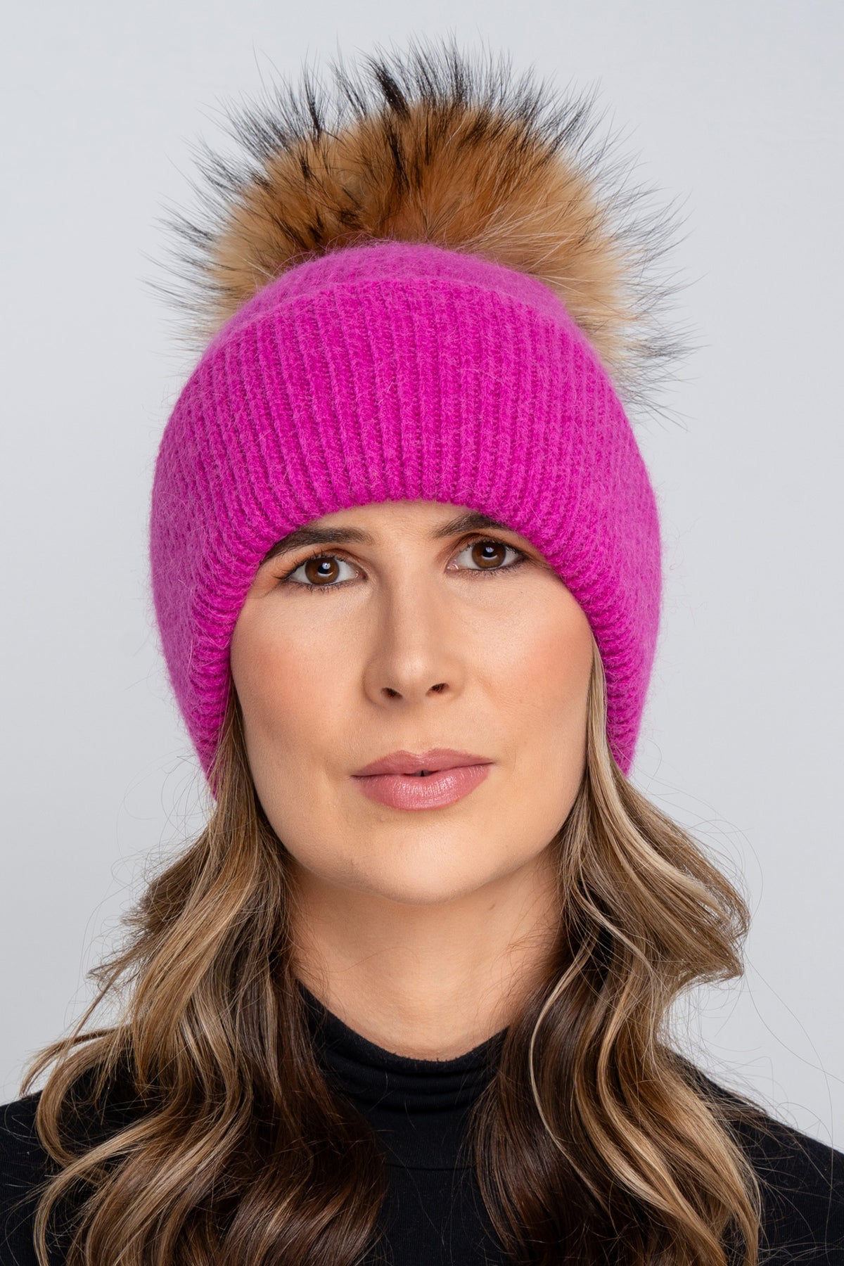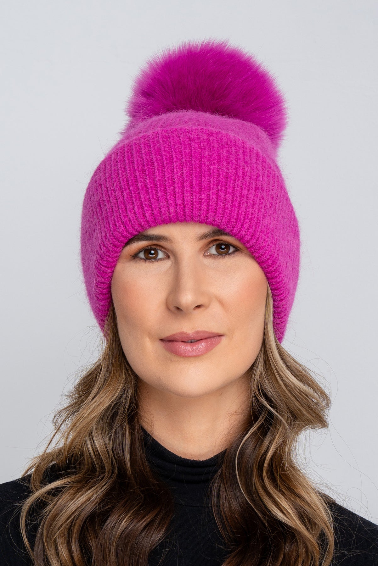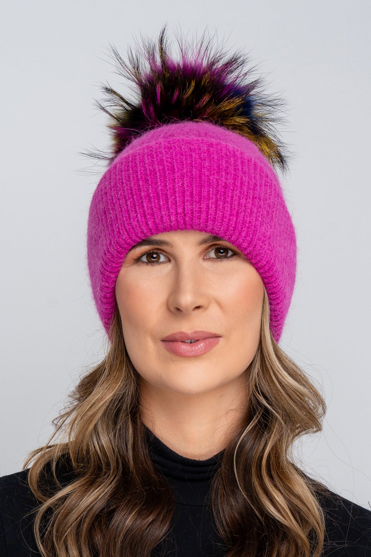 The Kensington Fuchsia Angora/Cashmere Mix Fur Bobble Hat
