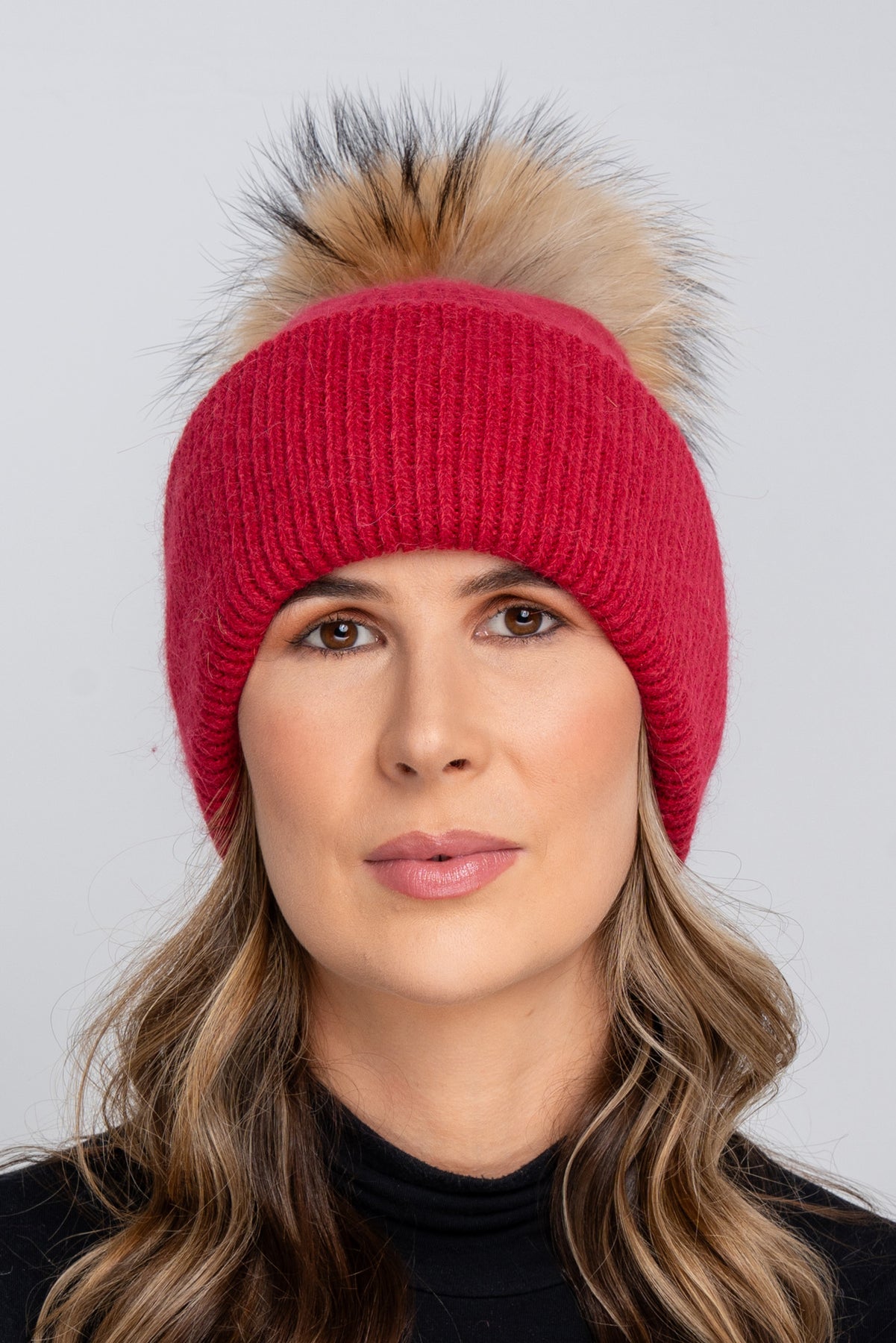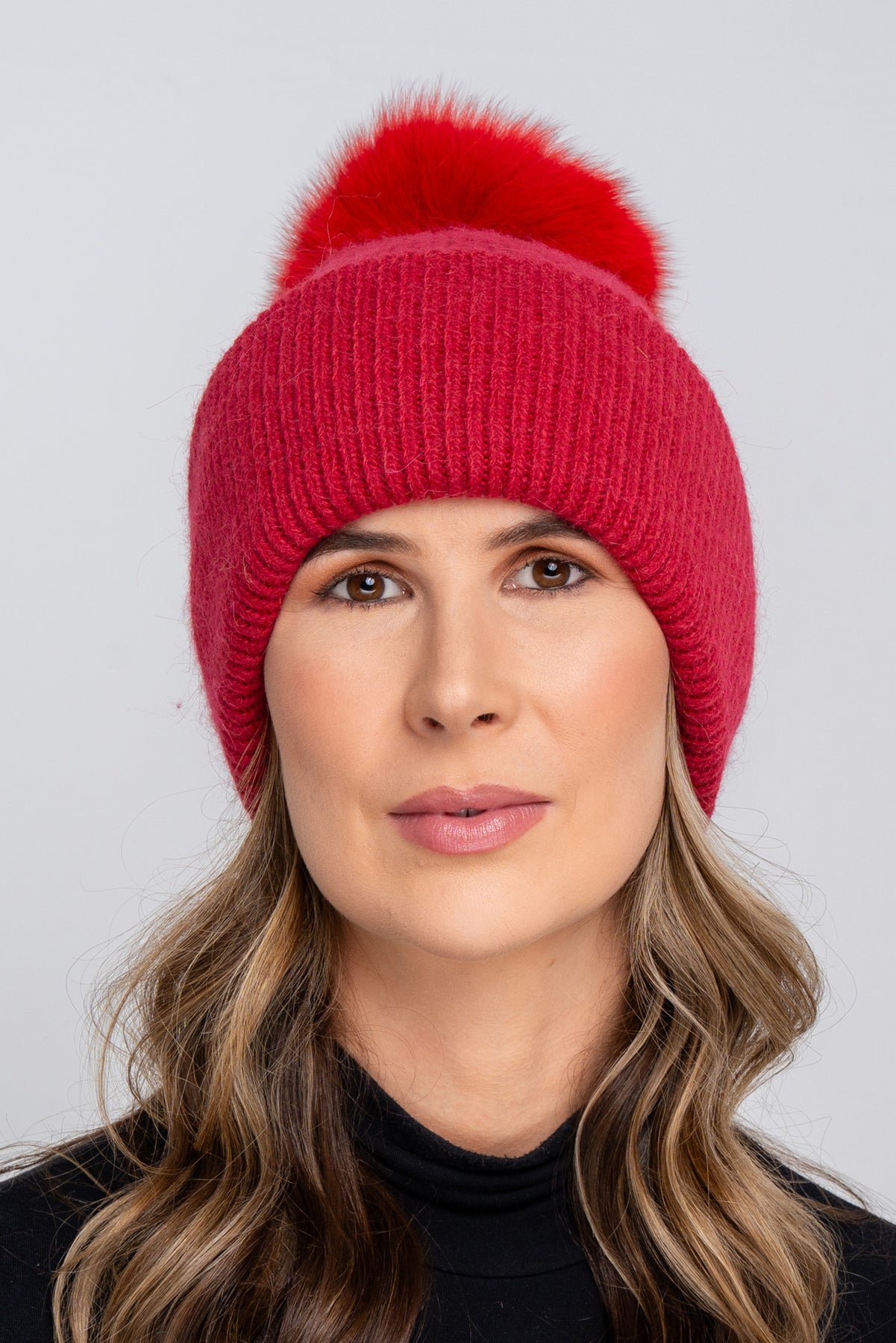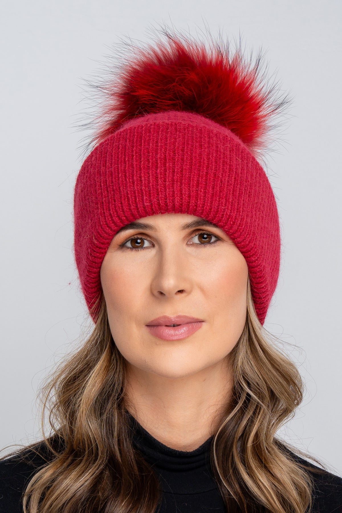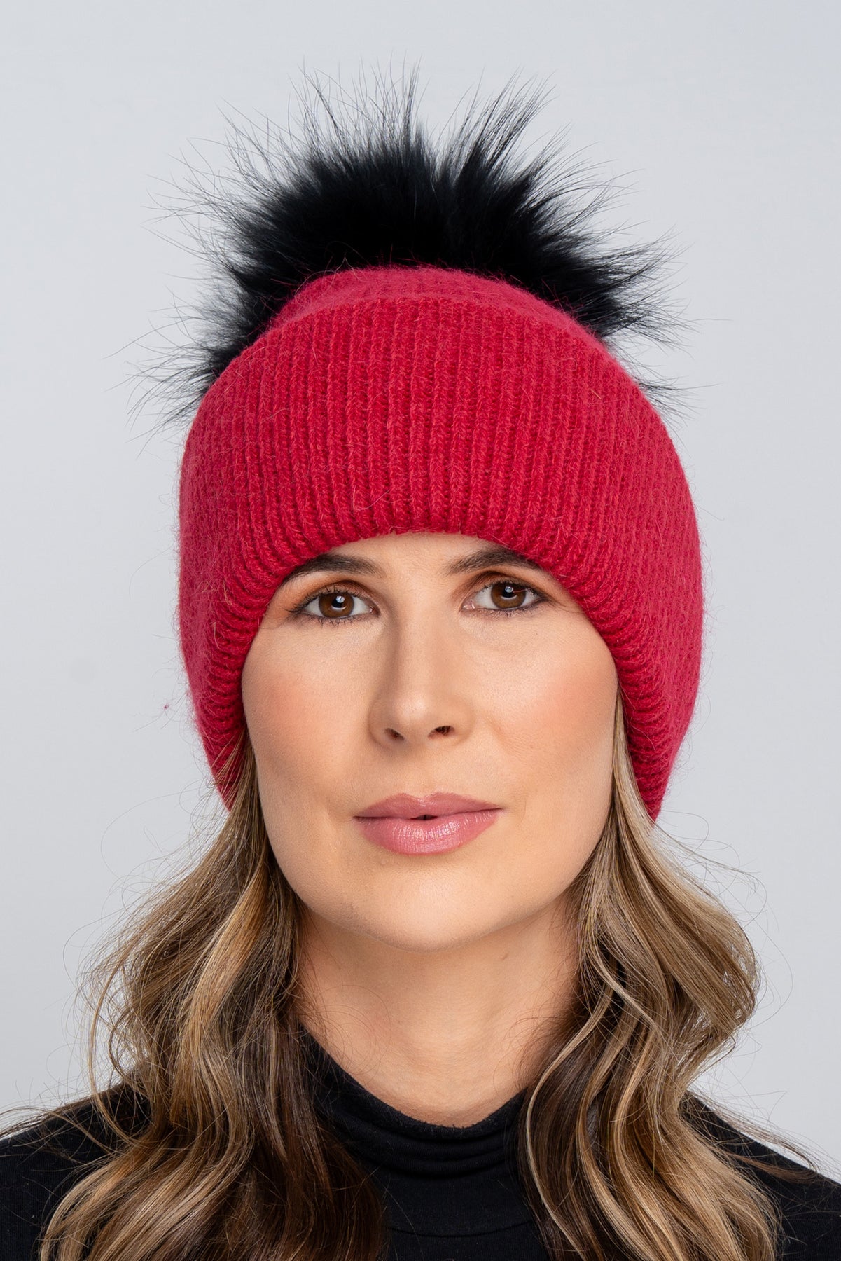 The Kensington Ruby Red Angora/Cashmere Mix Fur Bobble Hat