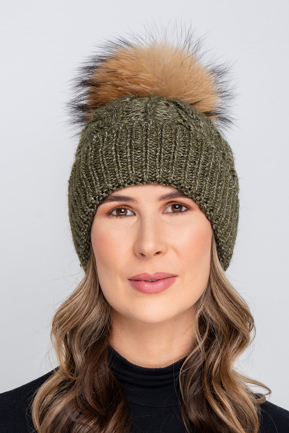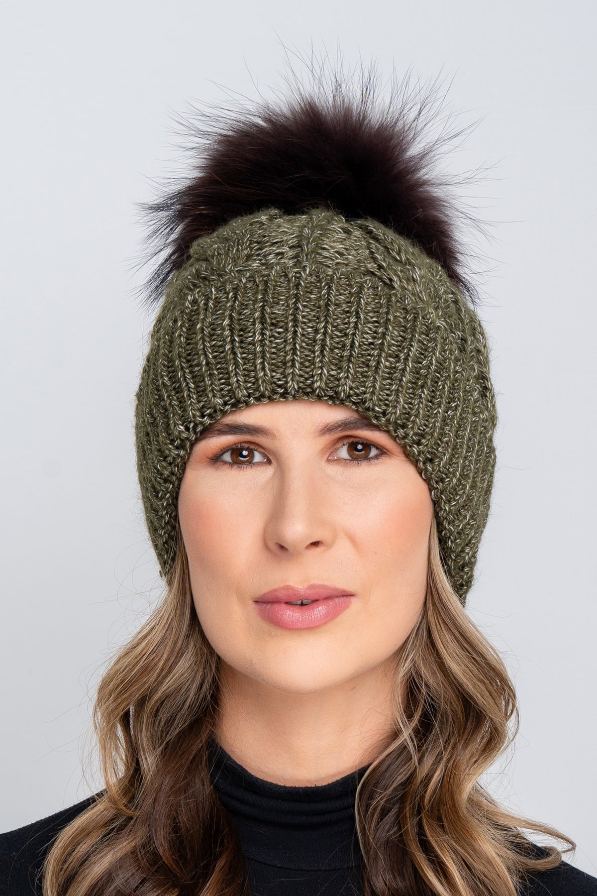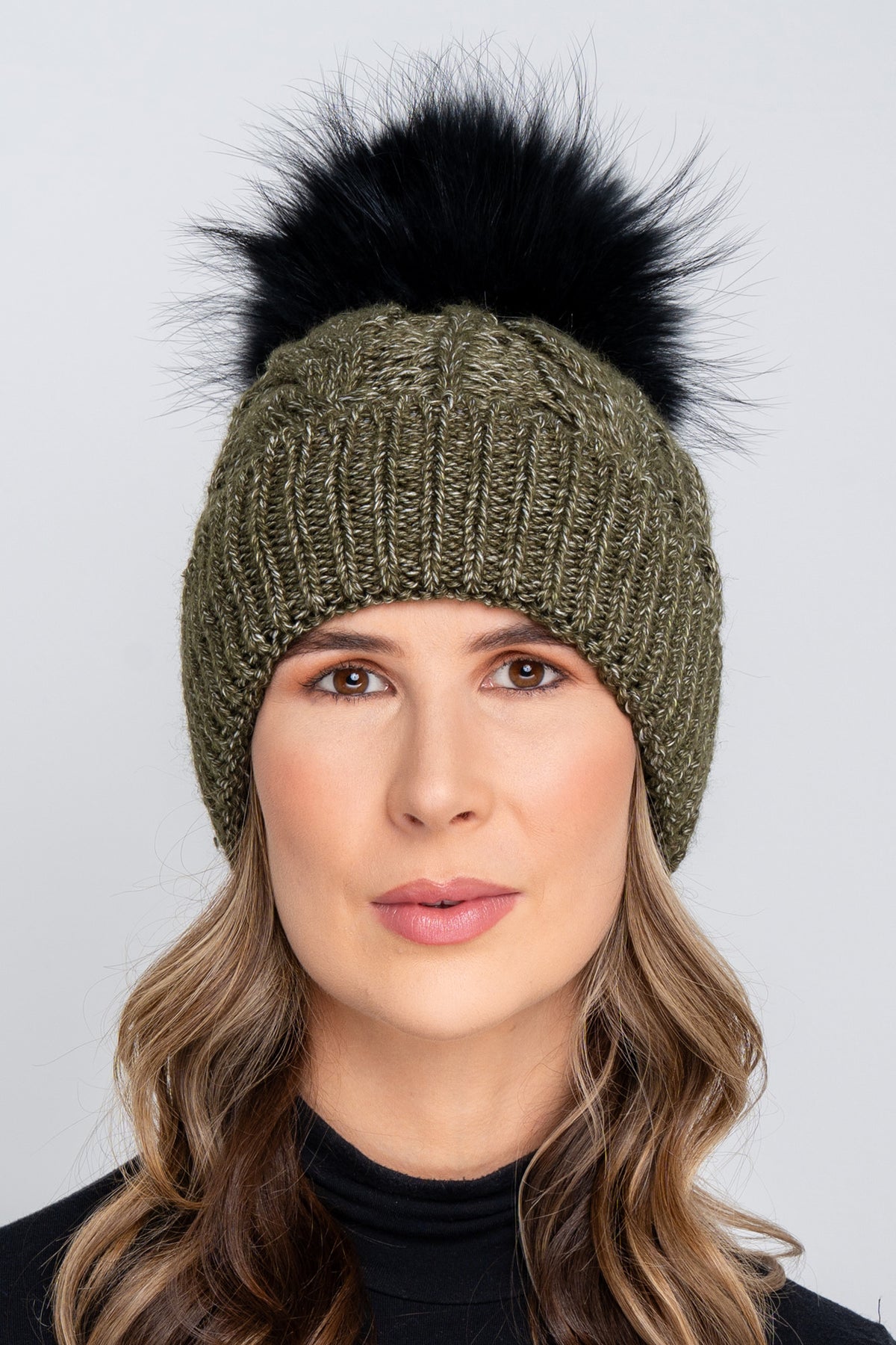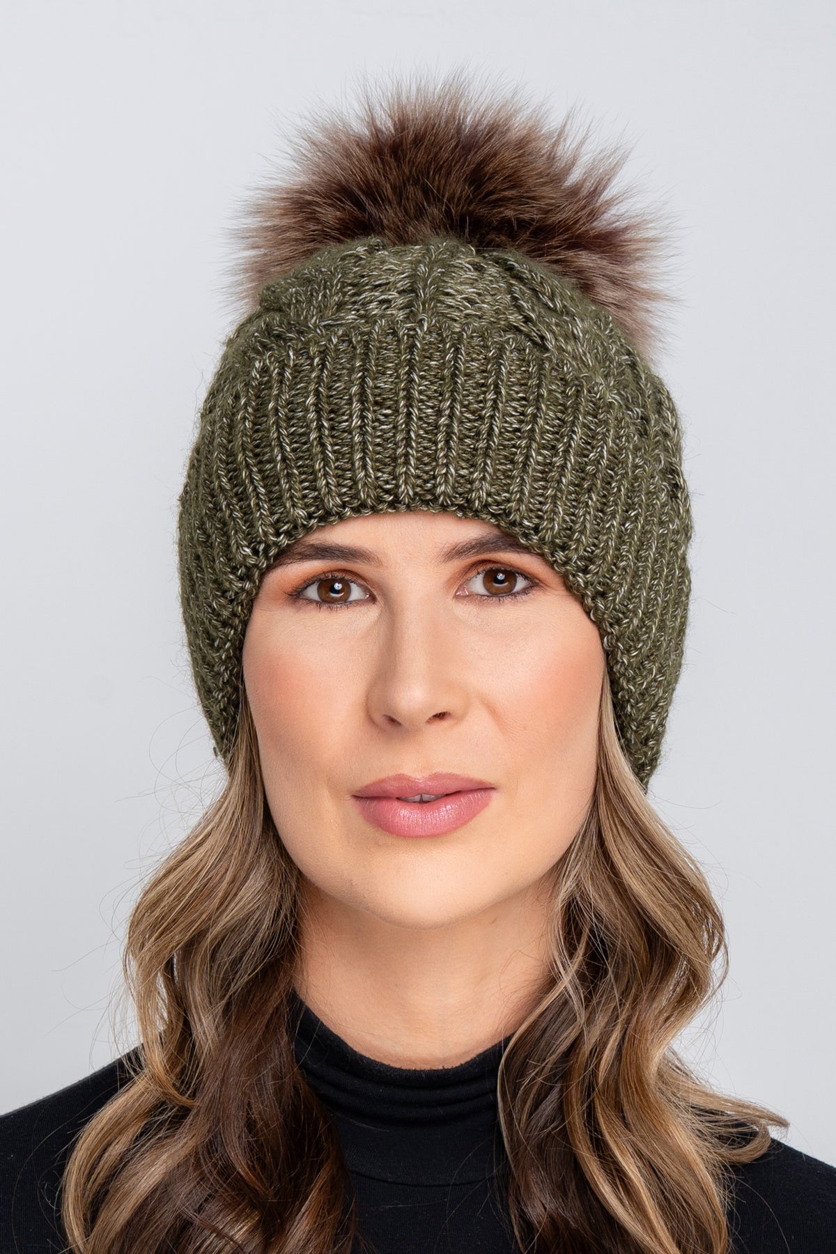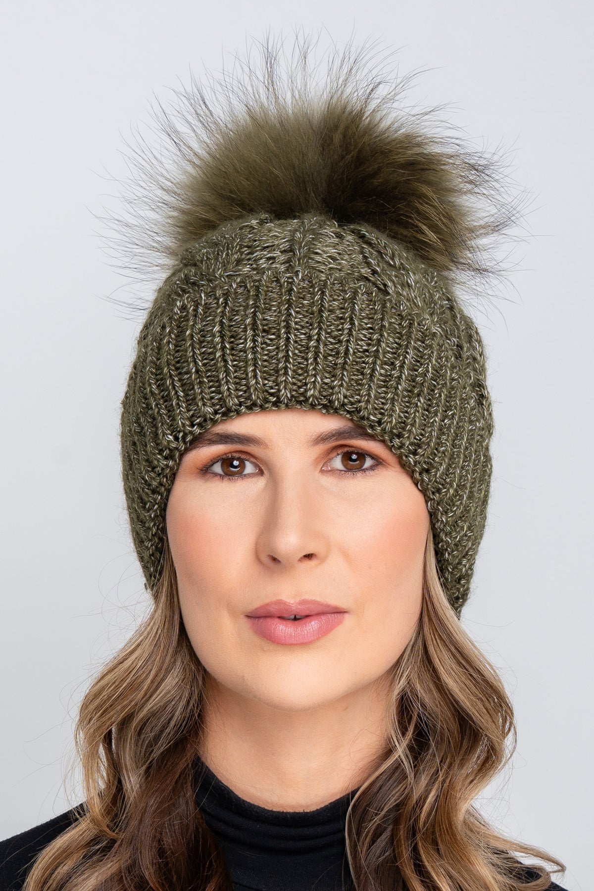 The Melrose Fleece Khaki Lined Fur Bobble Hat