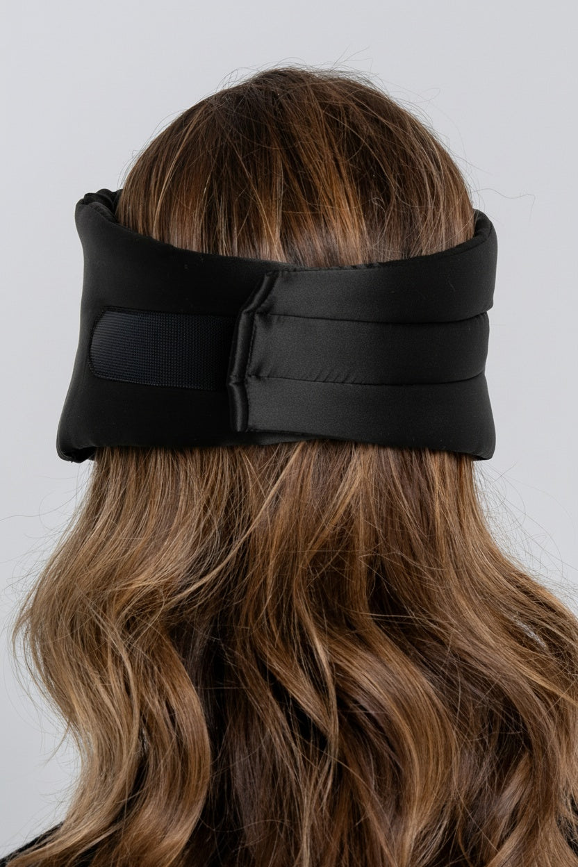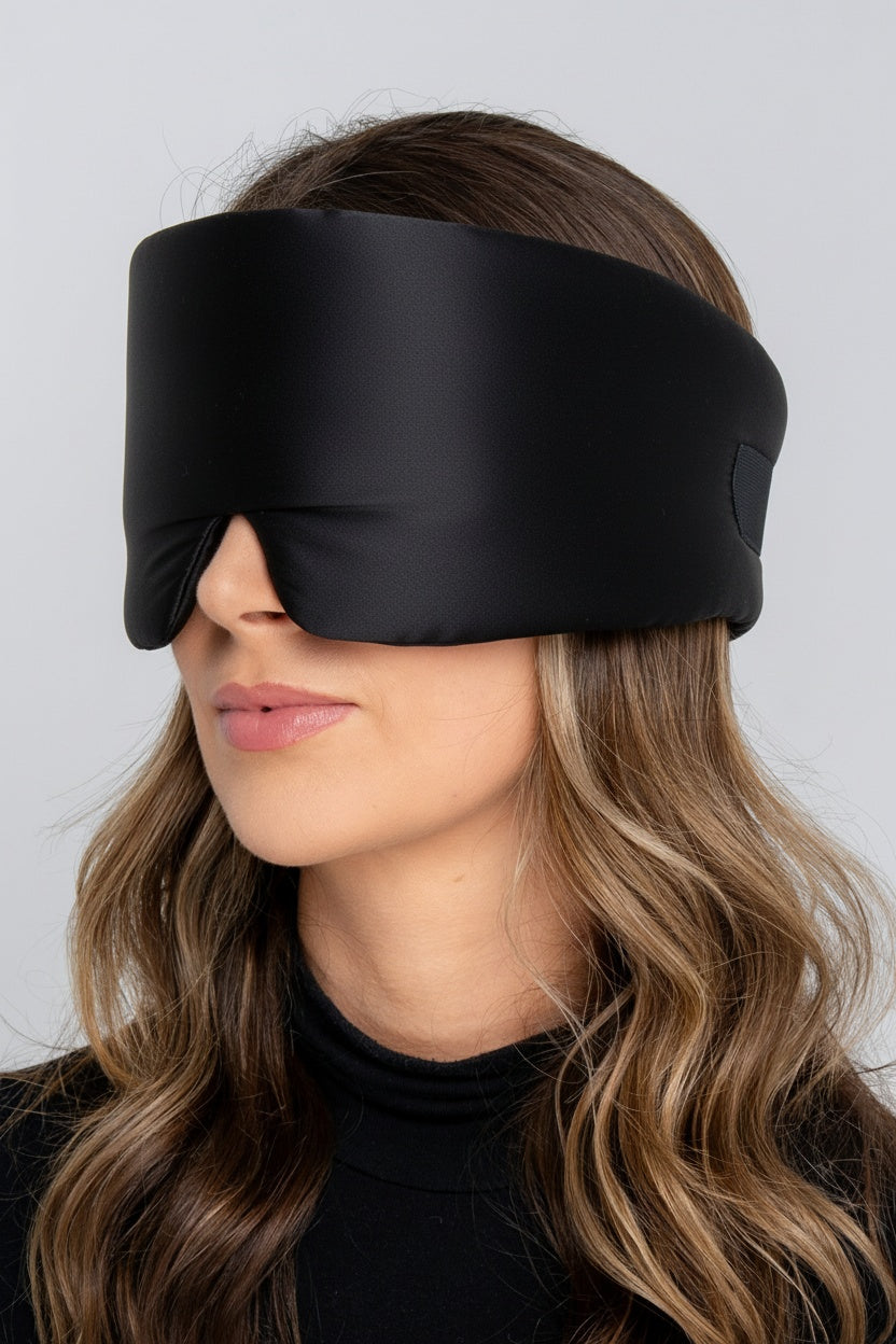 Totally blackout and with a fully adjustable velcro head-strap this is one of the thickest and most luxurious eye-masks on the market.